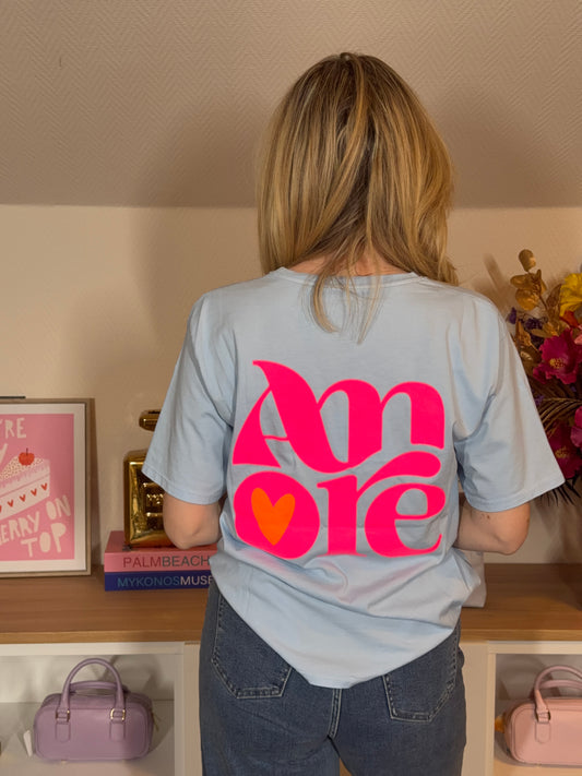 T-SHIRT AMORE LICHT BLAUW